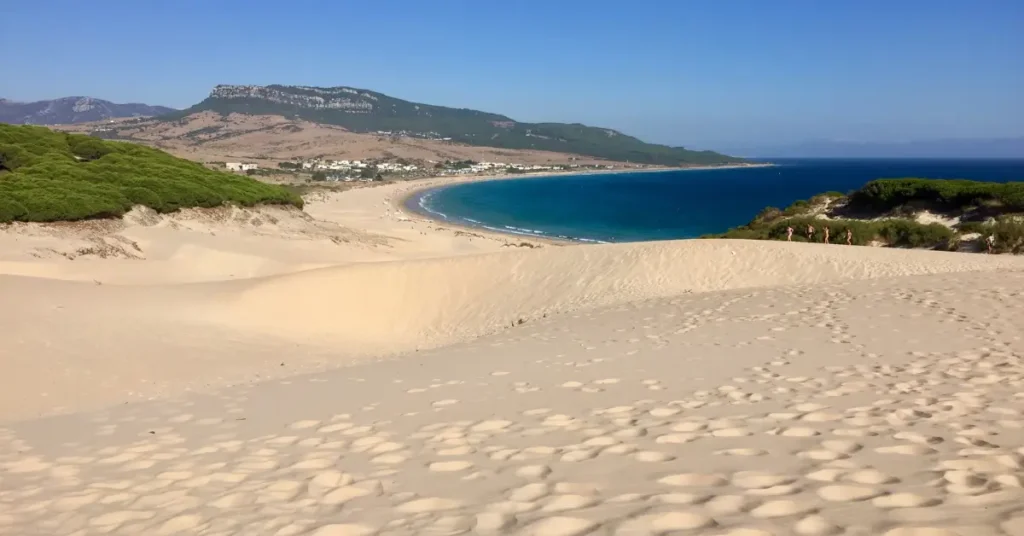 One of the Best Beaches in Spain and one of its last truly wild stretches, Playa de Bolonia runs for 4 kilometers along the Atlantic coast near Cádiz. What makes this beach special is its impressive 30-meter-high sand dune that rises dramatically at its western end, shaped by the constant easterly Levante wind.