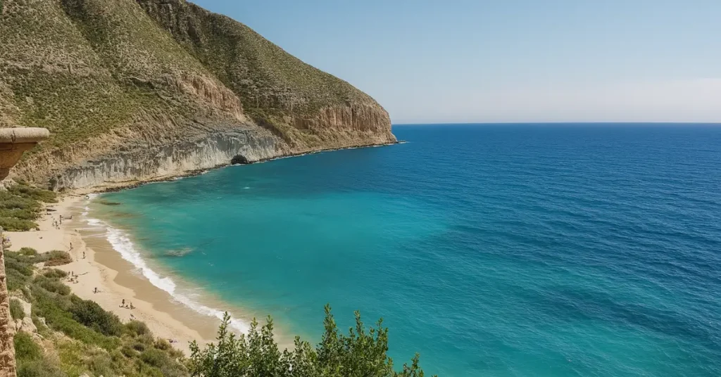 In the Cabo de Gata-Níjar Natural Park, you’ll find Playa San Pedro, a beautiful beach that showcases the stunning wild beauty of Almería’s coastline and is recognized as one of the Best Beaches in Spain. This remote cove is framed by dramatic cliffs and the ruins of a 16th-century castle, creating a scene of untamed splendor.