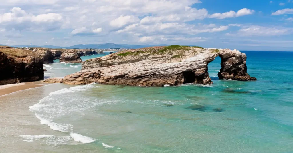 Also known as Cathedral Beach, this natural wonder on Galicia’s northern coast is famous for its spectacular rock formations and stands proudly among the Best Beaches in Spain. Over millennia, wind and water have sculpted the cliffs into arches, buttresses, and caves reminiscent of a Gothic cathedral — hence the beach’s name.
